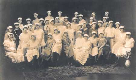 Abschluss-Klasse 1924 mit weißen Schülermützen und Couleur-Bändern