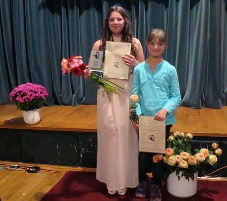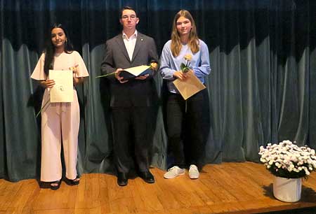 Musikalisch umrahmt wurde die würdige und doch kurzweilige Feier von Pauline Schneider und Jannis Wachs mit einem Lied aus dem Musical „Tanz der Vampire“, Charlotte Haß mit einem Lied aus „My Fair Lady“ und Lena Bitterwolf mit einem Gesang aus „Jekyll and Hyde“.
