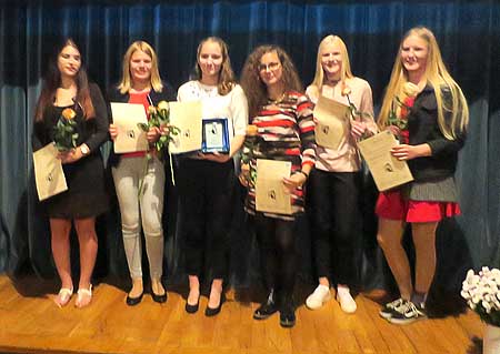 Die Siegerin der Kategorie Sprachen (links) wurde als Botschafterin des RWG gelobt.