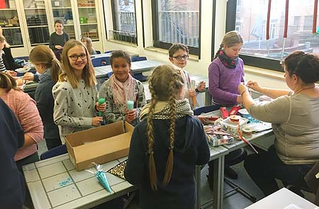 Das gilt auch für die zweite Station, wo unter der Regie von Frau Schwind und Frau Hofmann Badesalz produziert wurde. Auch hier galt es, zusammenzuarbeiten. Erlebt konnte auch die Vorfreude werden, auf diese Weise anderen etwas Gutes zu tun, denn die kleinen, wohlriechenden Pülverchen eigneten sich ideal als Weihnachtsgeschenk für die Lieben.