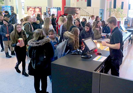 Ab ging es also nach der Zeugnisverteilung ins Cineplex. Wie bestellt, lugte sie Sonne hinter den Wolken hervor und verbreitete eine angenehme Frühlingsstimmung. Bei vielen mag sie sich mit dem Gefühl gedeckt haben, das vom Zwischenzeugnis ausging, das im Rucksack steckte, wenn es gute Noten gegeben hatte. Anderen half sie vielleicht, die Tatsache noch etwas zu verdrängen, dass es im nächsten Halbjahr besser vorangehen muss. Wie dem auch sei, bei dem langen Zug hin zum Kino war die Stimmung sichtbar gut.