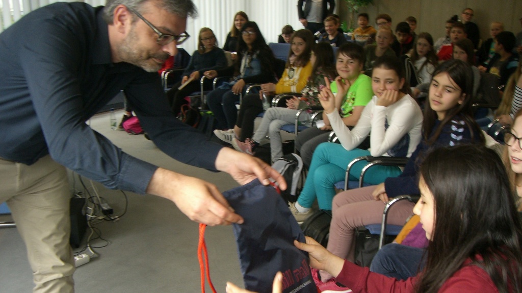 Insbesondere standen jedoch auch folgende Fragen im Mittelpunkt der Veranstaltung: Wie entsteht eigentlich ein Buch? Wie ist der Buchmarkt aufgebaut? Und wie sieht der Alltag in einem Kinder- und Jugendbuchverlag aus?
