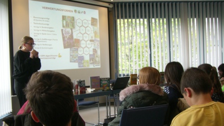 Hierzu waren einige Mitarbeiterinnen und Mitarbeiter aus dem Loewe-Verlags anwesend, die reihum die Arbeit in den Abteilungen, für die sie jeweils zuständig sind, aufzeigten und den Schülern geduldig Rede und Antwort standen auf ihre zahlreichen Fragen: