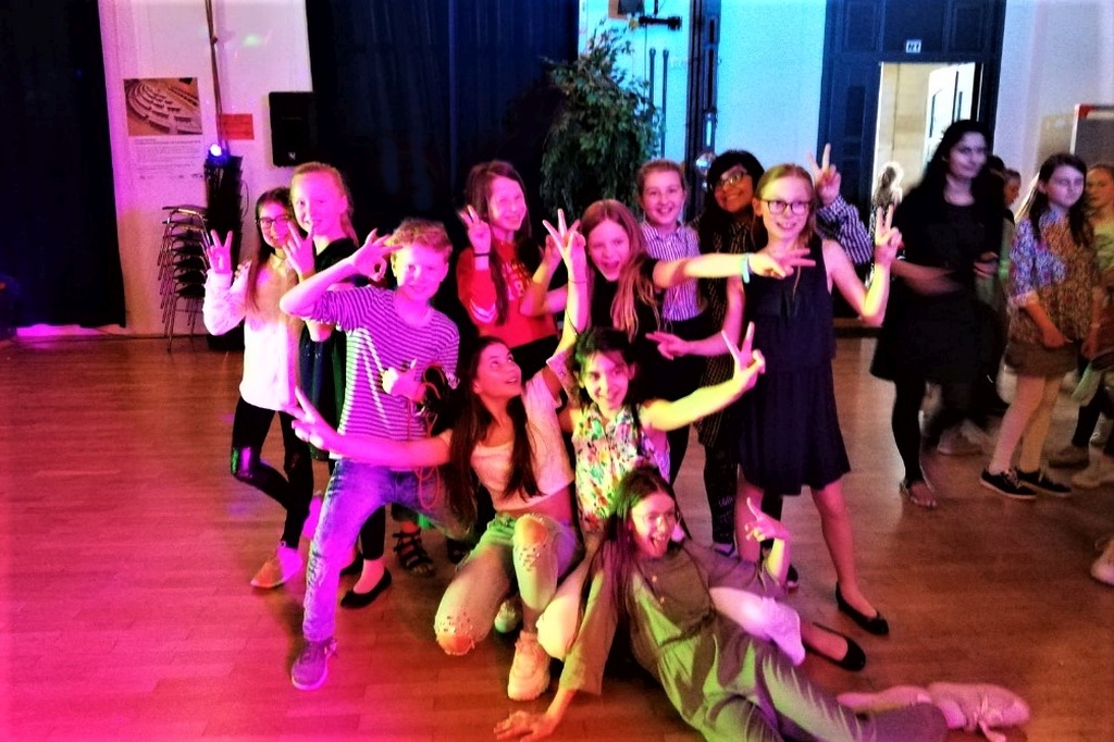 Eine wilde Horde 5.Klässler brachte am Vorabend von Christi Himmelfahrt die Aula zum Beben, denn die Schülerinnen und Schüler des Profilfachs Musik und Tanz hatten zur Disco der 5.Klassen eingeladen, woraufhin sich 96 RWGler angemeldet hatten, um gemeinsam zu feiern. Noch etwas unsicher darüber, wie so eine Disco wohl abläuft, tasteten sich die ersten Schüler in die dekorierte und mit Partylichtern ausgestattete Aula vor. Aber es dauerte nicht lange, bis Amelie, Lilli und Ferdi alle begrüßten und den Abend mit dem Tanz ihrer Gruppe einläuteten.