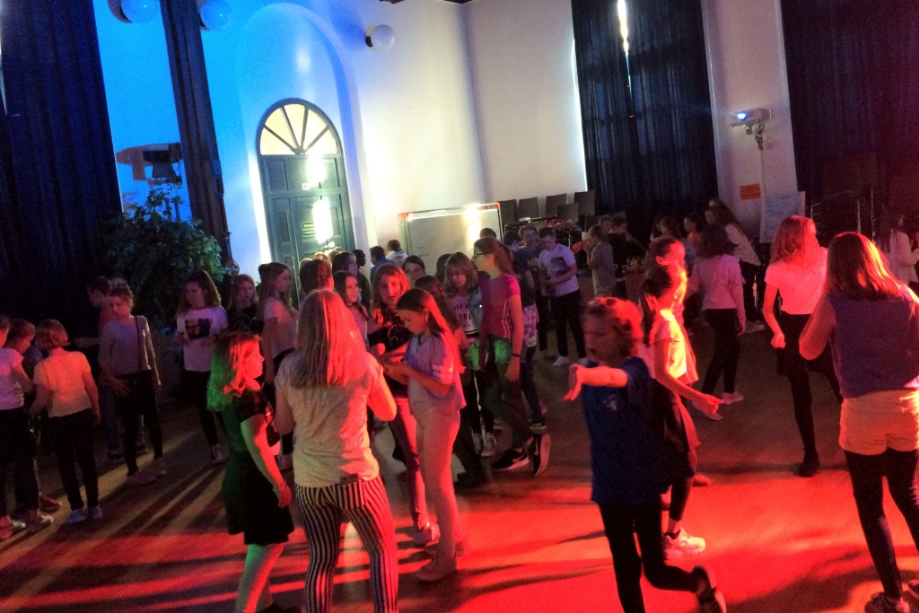 Auch für die Verpflegung war bestens gesorgt – Pizzabrötchen, Muffins und Co sorgten für den nötigen Energienachschub. Laut und schwitzig ging es in der Disco her – die Stimmung war hervorragend! Der abschließende Mitmachtanz, den Rosalie und Jule vorstellten, rundete den Partyabend ab und regte auch die Letzten an, mitzutanzen. Etwas erschöpfte, aber strahlende Kinder wurden am Ende wieder von ihren Eltern in Empfang genommen, sodass ein gelungener Abend zu Ende ging.