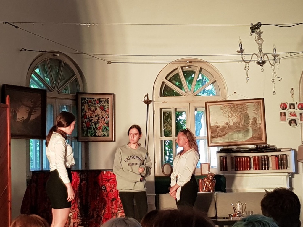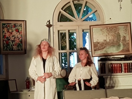 Trotzdem wechselt das Schloss tatsächlich den Besitzer, doch zum Erstaunen aller ist der Butler der neue Eigentümer und wird von Cäcilie von Selmbach-Düssel zu ihrem Ehemann erkoren. Nicht nur die mit Wortwitz und einem hohen Spieltempo ausgestattete Handlung forderte dem Publikum, das sich sehr amüsierte und dies mit wiederholtem Szenenapplaus kund tat, viel ab, auch die Besetzung des Stückes war sehr anspruchsvoll. Kurz vor der Aufführung war der „Butler“ krankheitsbedingt ausgefallen und so wurde die Rolle spontan von anderen Mitwirkenden mit übernommen. Aber das Publikum dachte prima mit und verinnerlichte, dass immer diejenige Person, die gerade die Dienstkleidung des Butlers trug, diesen verkörperte. Chapeau an alle Mitwirkende für ihre Spielfreude und ihre Spontanität. Geht nicht – gibt´s nicht!
