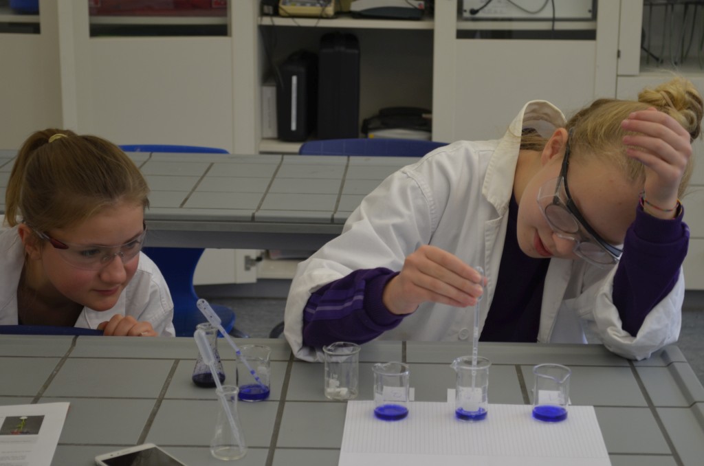 Am 6.11. trafen sich sieben Schülerinnen des RWG aus den Jahrgangsstufen 7, 9 und 10 zu einem ganztägigen Praktikum in der Chemie. Der Kurs „Chemieexperten“ wird im Rahmen der regionalen Begabtenförderung angeboten.