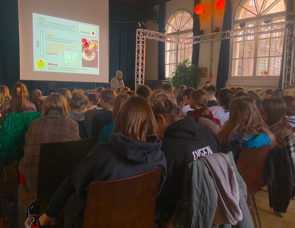 Als Abwechslung vom Unterricht bot sich unseren Schülern der Geographiekurse (Q11) in der Aula die Möglichkeit zur Teilnahme an einem Vortrag zu einem hochaktuellen Thema: