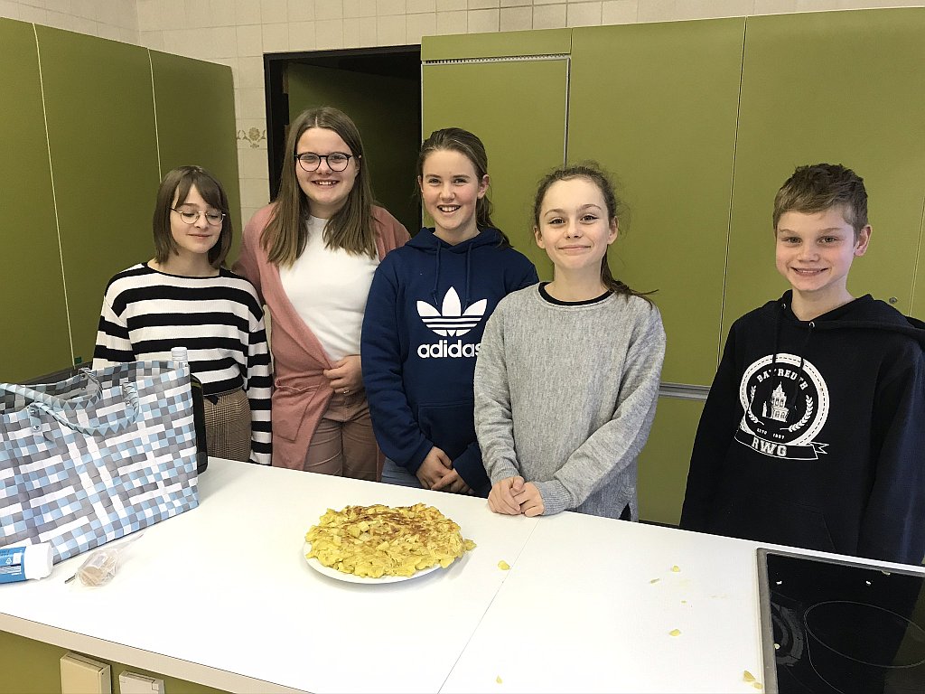 Die SprachenChecker haben sich bei ihrem letzten Treffen einer echten Herausforderung gestellt: Nach Christmas-Crackers und Halloween-Kürbissen wagten sie sich diesmal an eine echte spanische Tortilla. In der Schulküche wurden tapfer Zwiebeln gehackt, Kartoffeln geschält und Eier geschlagen. Und die Bemühungen lohnten sich: Am Ende durften wir eine leckere Tortilla probieren! Das Brutzeln und Schnippeln hat allen großen Spaß gemacht – wir sind gespannt, was wir beim nächsten Mal ausprobieren dürfen!