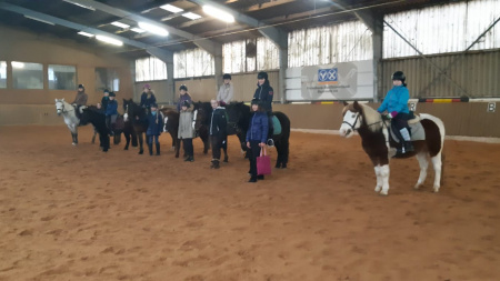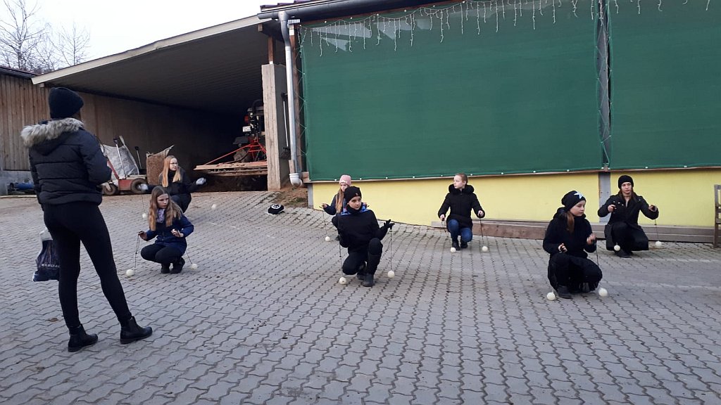 Der Auftritt hat allen Beteiligten viel Spaß gemacht und sie werden sich bei der nächsten Reitstunde noch darüber austauschen, wenn sie sich gegenseitig dabei helfen, ihre Pferde zu satteln und zu zäumen oder sich beim Aufsitzen unterstützen. Teile der Choreographie entsprechen in vielen Elementen den Hufschlagfiguren, nach denen in der Halle geritten wird, und die sich zu merken Übung erfordert. Aber will man in so einer großen Gruppe reiten, dann müssen die Kommandos allen bekannt sein.