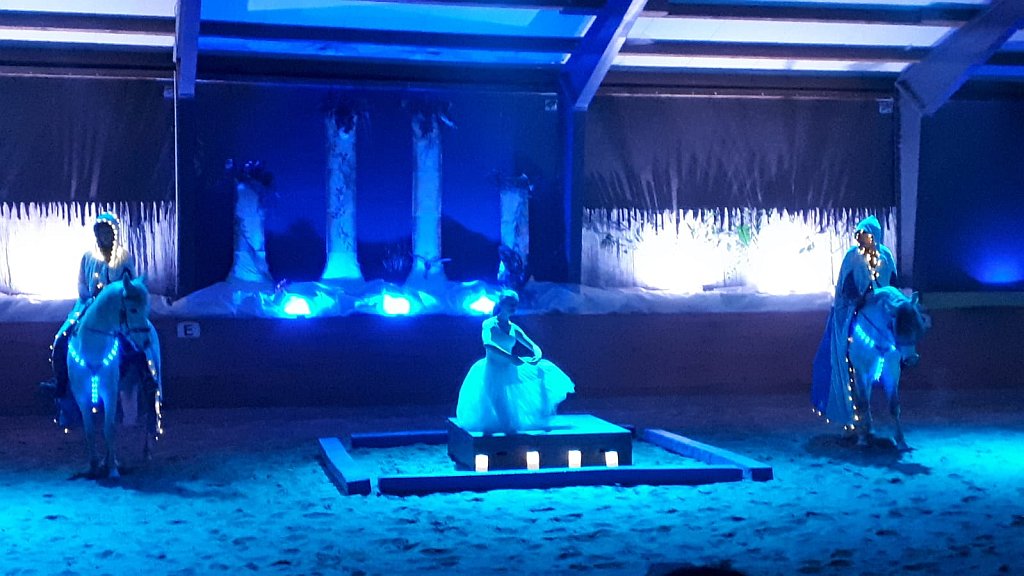 Aber nicht nur die Kinder der Reit-AG faszinieren die Zuschauer und lassen sie träumen. In der Lichterzauberwelt festgehalten gelingt es Saraphina (märchenhaft schön getanzt von Anna- Lena Holzbaierlein) die berittenen Wächter zu verzaubern und sie in die Freiheit des Schmetterlingswaldes zu entlassen. Hier reiht sie sich in den Tanz der Schmetterlinge ein (getanzt von Lea Paulig, Anna-Lena-Holzbaierlein und A. Guder-Späth).