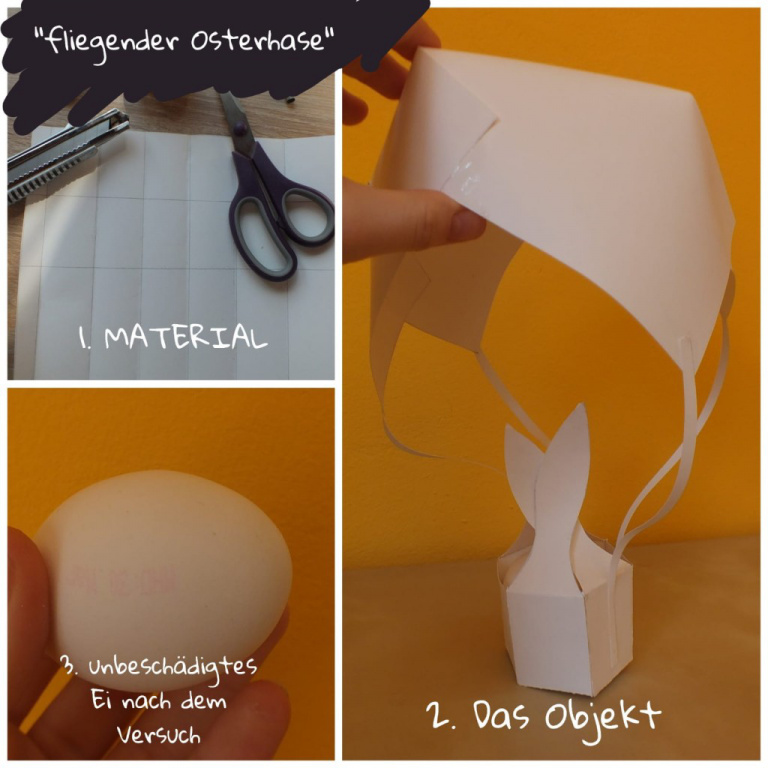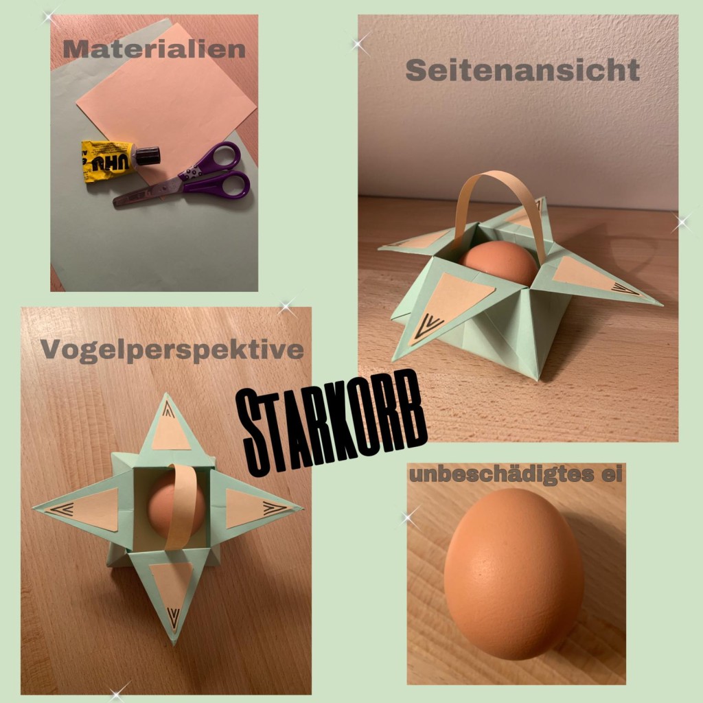 Eigentlich werden jedes Jahr im Kunstunterricht zum Thema „Verpackungsdesign“ im März/April Eier verpackt. Schließlich muss getestet werden, ob das Design alltagstauglich ist. Und meist bemerken wir: „ Oh! Zum guten Design gehört nicht nur ein besonders schönes Aussehen, nein ein Ei sei es gekocht oder ungekocht soll auch noch was aushalten!“ Und da haben wir dann meistens auch schon unser Problem. In normalen Jahren verpacken die Schüler ihre Eier in 45 Minuten. Nur zwei Schreibmaschinenblätter und ein Klebestift sowie eine Schere sind für die Bastelaktion erlaubt. Normalerweise fliegen in den anderen 45 Minuten die Eier aus dem Kunstraumfenster des dritten Stockwerkes. Natürlich liegt unten ein Laken, damit man sie hinterher auch noch essen kann oder damit die Kleckerei nicht allzu stark ist. Manchmal nehmen wir auch eine Leiter und lassen das Ganze auf die Platten des Pausenhofes fallen. Die Verpackung die hält hat schon mal einen Preis gewonnen. Die schönste Verpackung auch. Ja und manchmal liegt Schönheit eben im Auge des Betrachters. Also bekommt den dritten Preis dann auch noch die originellste Verpackung. In diesem besonderen Jahr hat der Kurs daheim gebastelt und das ganze Projekt zudem noch fotografisch dokumentiert. Dass da nicht immer nur weißes Papier zum Einsatz kam stört gar nicht! Die Sieger der Challenge werden eine kleine Überraschung zu Ostern zugesendet bekommen. Der Osterhase spannt schon mal seine drei Körbchen auf den Rücken! 😉