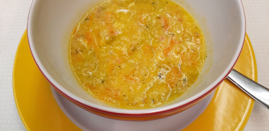 Mit Brühe ablöschen und aufkochen lassen. Kochen bis das Gemüse weich ist.
