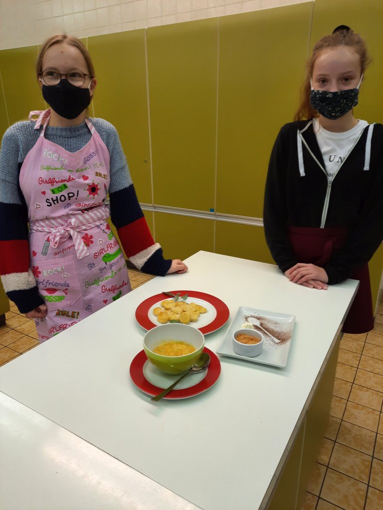 Die Zutaten für die Rezepte sollten regional, fair und klimafreundlich sein. Wir haben aus diesem Grund unter anderem in der „Hamsterbacke“ und im Dorfladen in Emtmannsberg eingekauft. Zum Teil handelt es sich um Rezepte die von Generation zu Generation weitergegeben wurden und stammen alle von den Schülerinnen der Koch-AG.