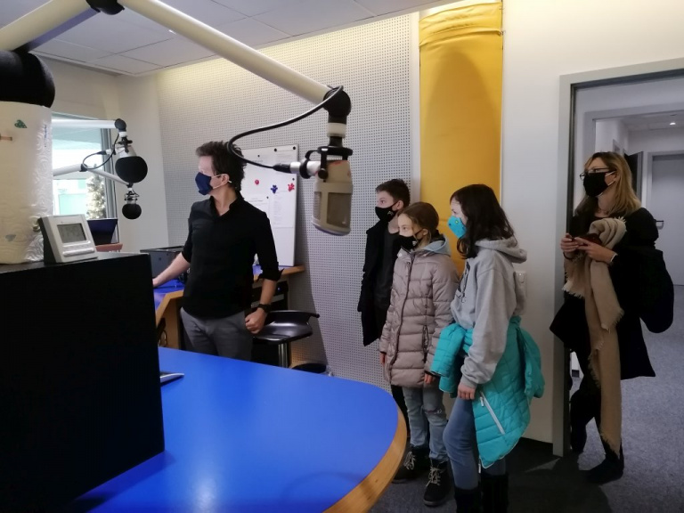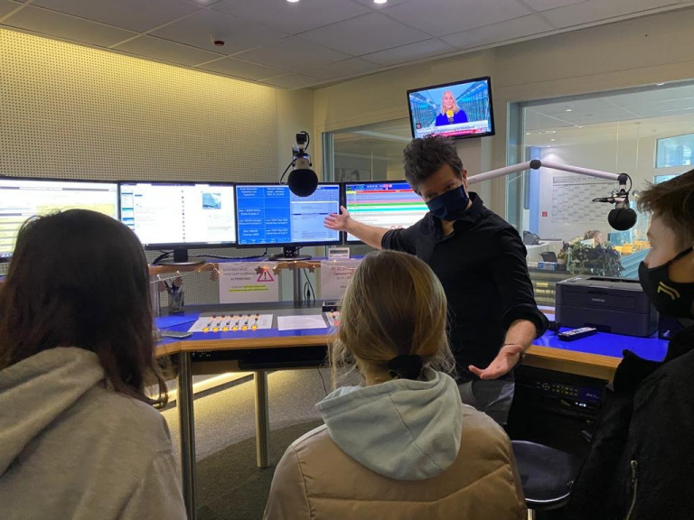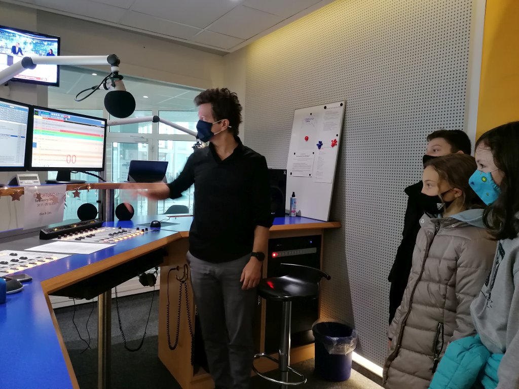 Arwen, Cedric und Finja hatten begleitet von Frau Wagner und Frau Körber die Gelegenheit, die Aktion im Interview mit Christian Höreth vorzustellen. Dabei konnte natürlich auch ein bisschen Studioluft geschnuppert werden und die Fragen der SchülerInnen an die Radiomacher wurden geduldig beantwortet.