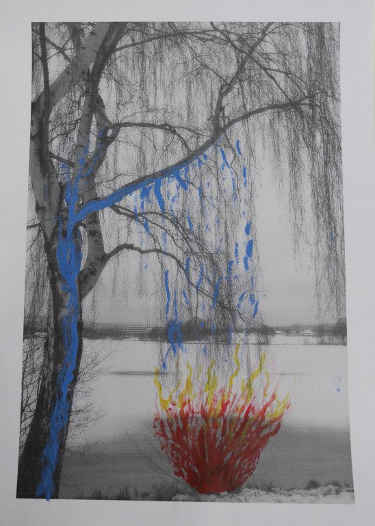Wie gut, dass nun der Frühling begonnen hat, hatte man bisher doch den Eindruck, dass dieser Winter nicht enden wollte. In dieser Saison fand der Unterricht im Profil Fotografie und in der Foto AG mit sehr viel Abstand statt. Dabei haben wir uns in der weißen Natur umgesehen, Tiere und Dynamische Linien im Schnee gefunden, ein Gedicht von Enzensberger „Kirschgarten im Schnee“ interpretiert und Blüten auch Limetten in die Tiefkühltruhe gelegt sowie unsere alten Fotos übermalt und an einem anderen Ort fotografiert.