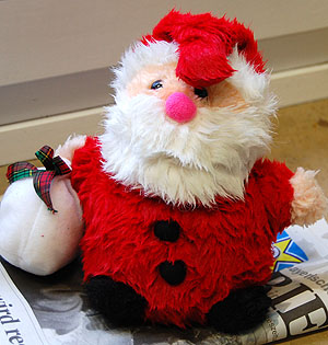 Einsam und verlassen lag er tagelang im Pausenhof im Schmutz. Hunderte von Schülerinnen und Schülern und wohl auch einige Lehrer gingen jeden Tag achtlos an ihm vorbei. Niemand kümmerte sich um den armen, kleinen, verlassenen Stoffnikolaus mit seiner verwegenen roten Mütze. Nur Frau Joost hatte ein Erbarmen: Sie nahm den kleinen Kerl mit in ihr Büro und verpasste ihm erst einmal eine Dusche, um ihn von Schmutz und Dreck zu säubern. Jetzt sitzt er auf der Heizung zum Trocknen – und hat im Sekretariat von Frau Joost einen kuscheligen Platz gefunden.
