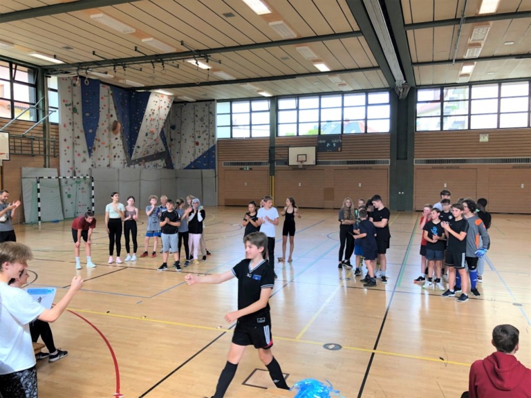 Heiß her ging es anschließend bei den Spielen der 7.Klässler. Hart umkämpft setzte sich am Ende „Noah ist 12“ aus der 7e durch und konnte als Sieger vom Platz gehen.