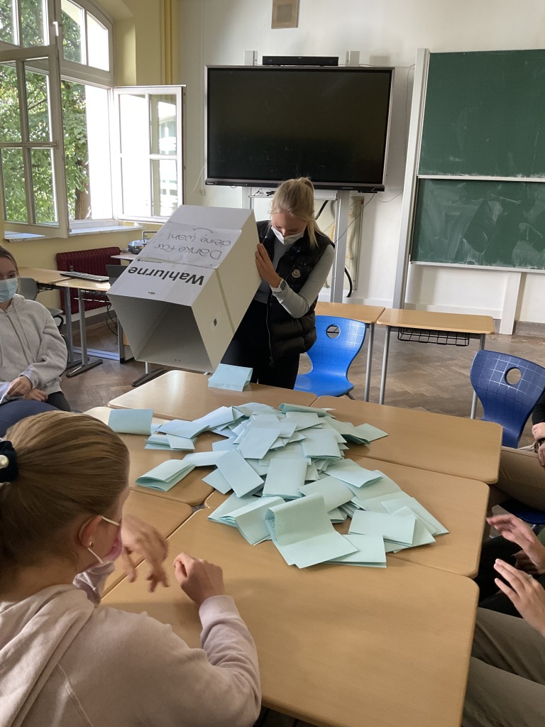 Die Schülerinnen waren auch für die Auszählung zuständig und konnten so das Wahlergebnis festsetzen. Das Ergebnis wurde anschließend in der Schule für die gesamte Schulfamilie öffentlich zugänglich gemacht.