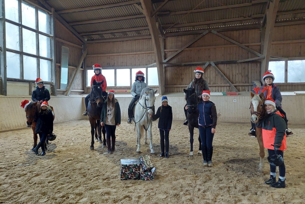Die zwei- und vierbeinigen Nikoläuse und Rentiere der Reit-AG grüßen vom Hartings-Hof und wünschen allen ein schönes Weihnachtsfest und ein gutes Jahr 2022!