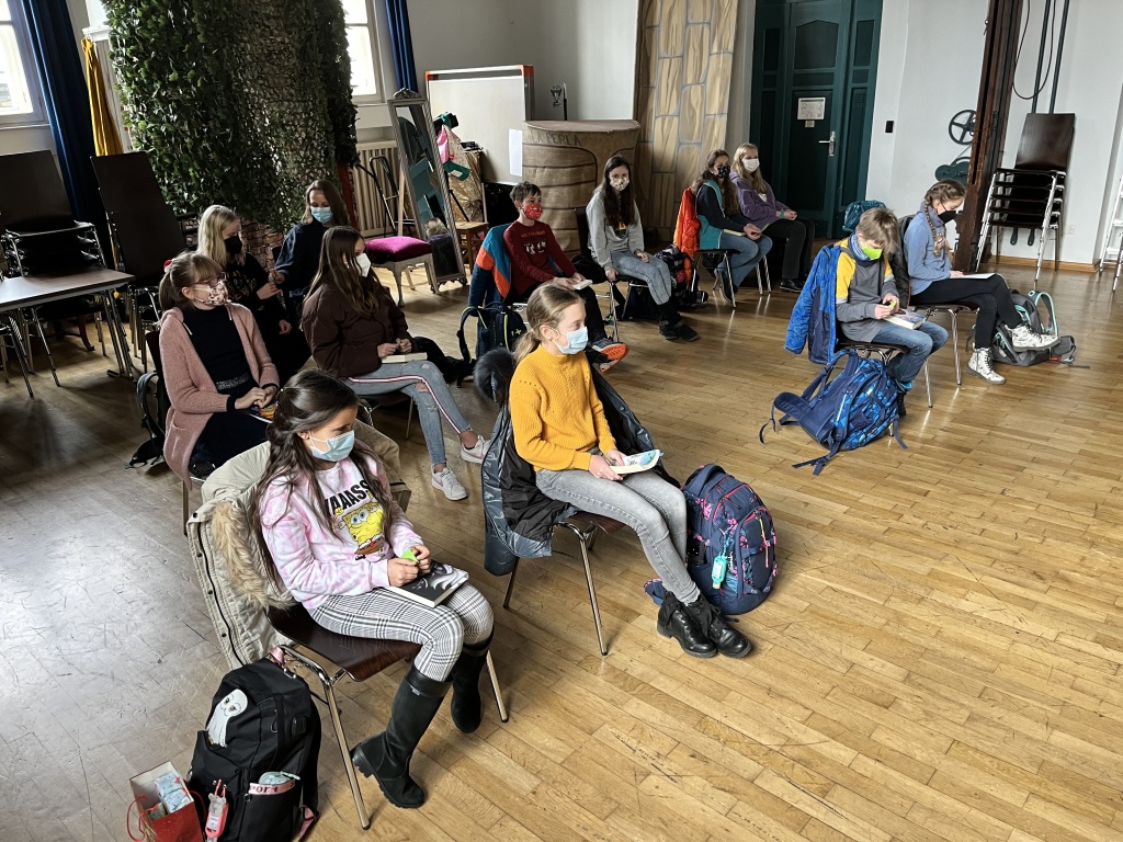 Die motivierten und aufgeregten Klassensieger Lukas Jahn (6a), Sandra Kossak (6b), Helen Hahn (6c), Leonie Lang (6d), Jonas Liebold (6e) und Cheyenne Baumann (6f) hatten sich äußerst gut vorbereitet und kamen in der Aula mit ihren Stellvertretern zusammen.