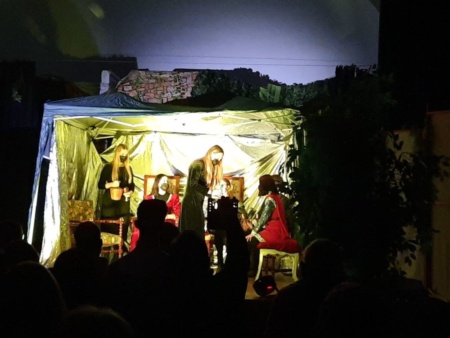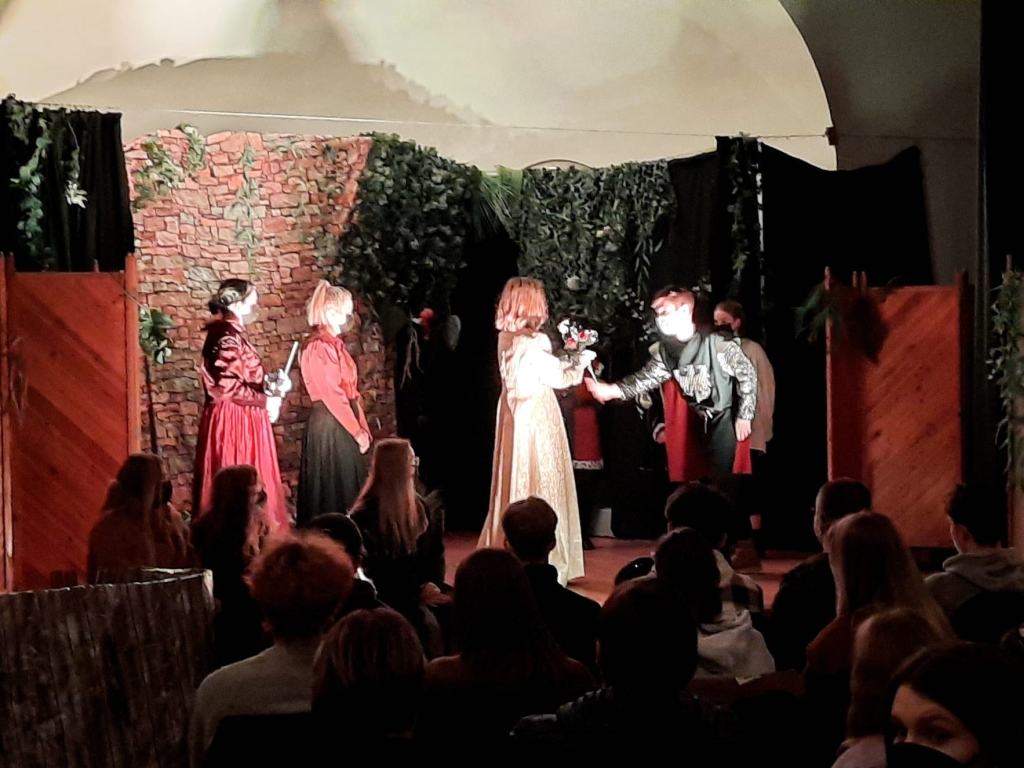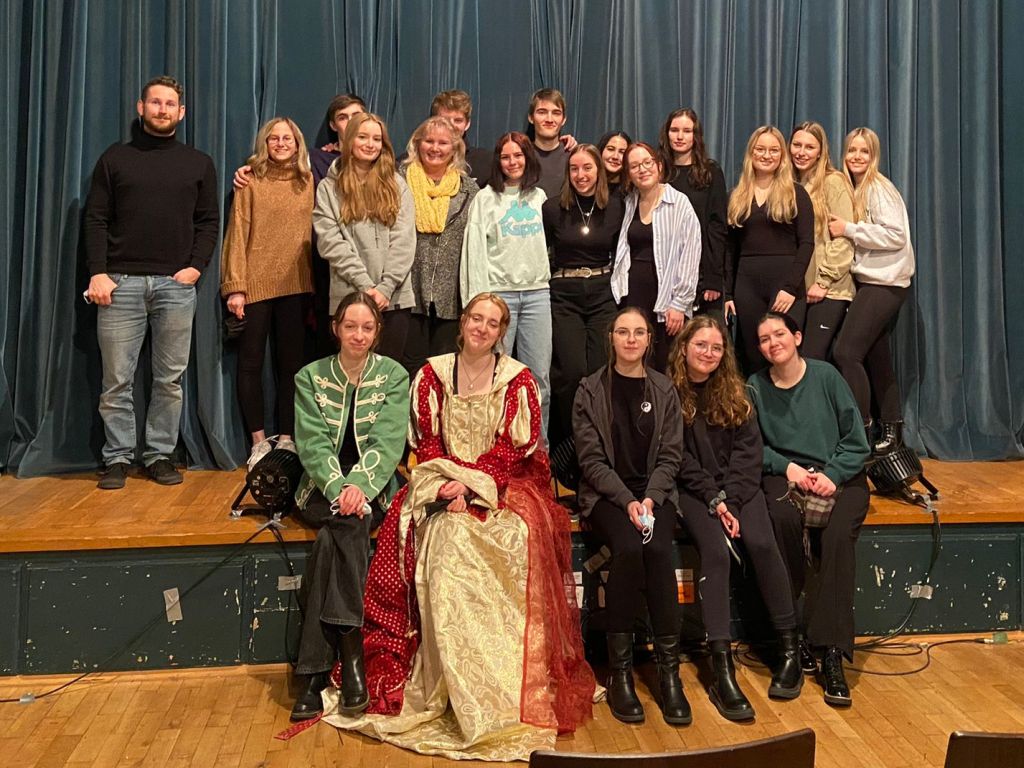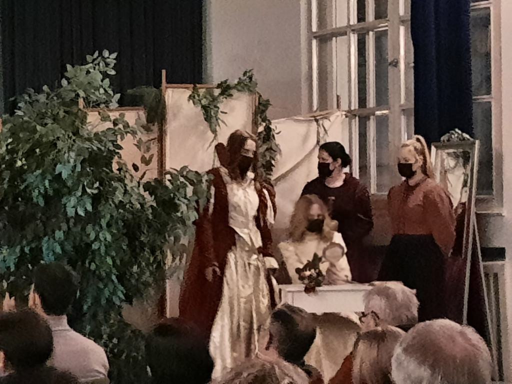 Die Hexen sind traurig über den Tod Siegfrieds und vor allem darüber, dass sie es nicht geschafft haben, den Nibelungenschatz zu rauben. Aber sie versuchen es weiter. Dieses Mal ziehen sie zum Hof des Königs Artus von England… Nicht nur das Stück hält einen in Atem auch war die Spannung unter den Schauspielern groß, ob wirklich bis zur Aufführung niemand in Quarantäne gehen muss. Doch die Nibelungen hatten Glück: alle waren fit und hatten ganz viel Freude daran, dem Publikum ihre Geschichte vorzuspielen. So spielten sie temperamentvoll in ihren farbenfrohen historischen Kostümen vor der aufwendigen Kulisse, die in der Aula die Illusion entstehen ließ, direkt am Wormser Hof zu sein. Wir freuen uns schon darauf, einige von den Schauspielern im nächsten Jahr wieder auf der Bühne zu sehen…
