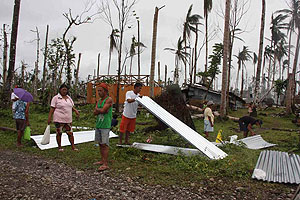 Viele Menschen haben ihr Dach nur notdürftig mit Planen abgedeckt und hausen entweder dort oder in Zelten des Roten Kreuz und oder der UNHCR. Dabei beginnt bereits die Taifun-Saison dieses Jahres. Eigentlich ist dies nichts Ungewöhnliches für die Philippinen mit durchschnittlich 20 Taifunen im Jahr. Aber die Stürme sind heftiger als früher. Deshalb beginnt beim Reparieren der Dächer jetzt ein Wettlauf gegen die Zeit.