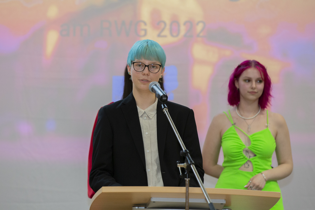 Vorher allerdings sorgte die RWG-Bigband nach zweijähriger Pause für beschwingte Töne zwischen den Redebeiträgen, die professionell und kurzweilig vom Moderatorenteam Felizia Exner und Luis Hagen jeweils eingeleitet wurden.