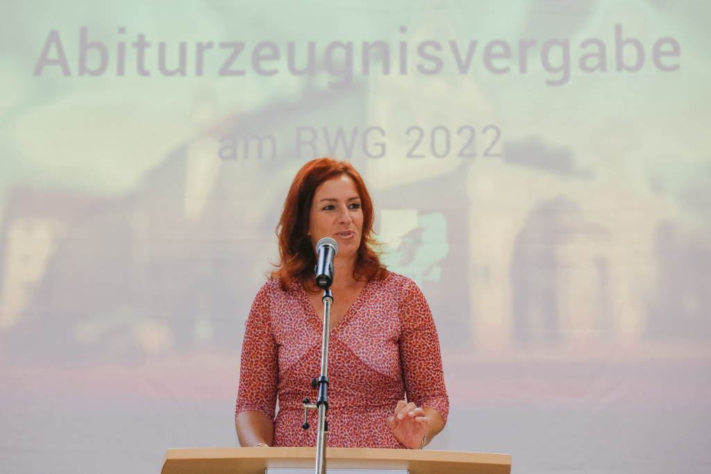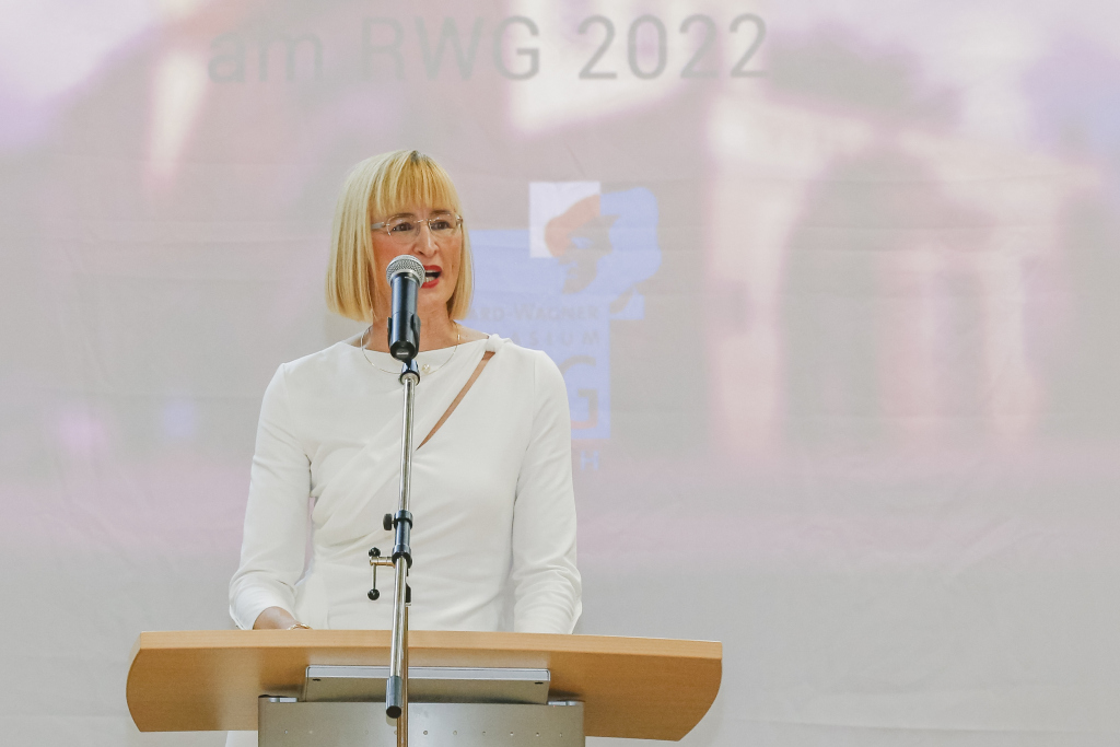 Mit diesem für eine Abiturfeier eher ungewöhnlichen Rat begann die Schulleiterin Frau Ursula Graf ihre Rede, nachdem sie auf die Schullaufbahn der Fünftklässer*innen von 2014 zurückgeblickt hatte und so manches Highlight nochmals vor Augen führte. Beim Rat zur Sonnencreme blieb es natürlich nicht! Wie die Autorin der ungewöhnlichen Aufforderung, die Journalistin Mary Schmich, so gab auch Frau Graf den Abiturient*innen mit auf den Weg, das Leben einerseits zu genießen, aber auch anzupacken und Wagnisse einzugehen.