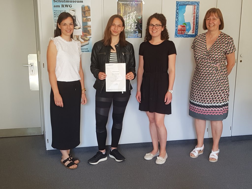 Coronabedingt fiel die Beteilung am diesjährigen Bundeswettbewerb Fremdsprachen sehr gering aus, umso mehr freuen wir uns, dass Katharina Petzold aus der Klasse 9a unsere Schule im Fach Englisch vertreten hat und wir ihr eine Teilnehmerurkunde überreichen durften. Herzlichen Glückwunsch!