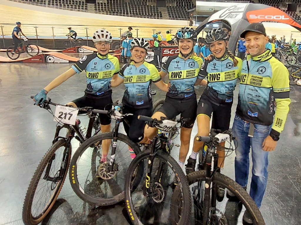 Amelie Knauer, Emma Heinrich, Laura Popp und Sarah Ströhla gewinnen in Berlin die Kategorie Mädchen III (Jahrgang 2007 und 2008) und holen sich den Titel bei den Deutschen Meisterschaften im Schulmountainbiken.