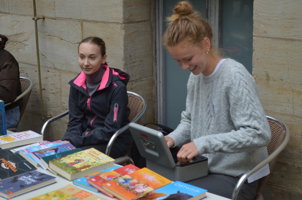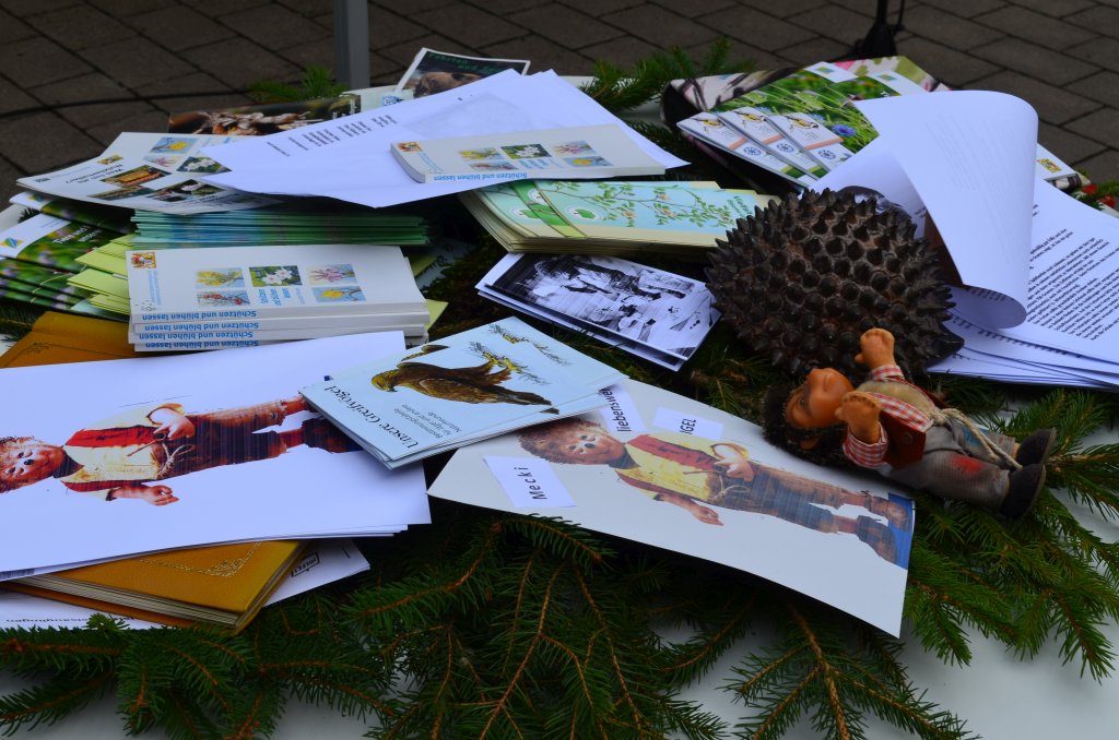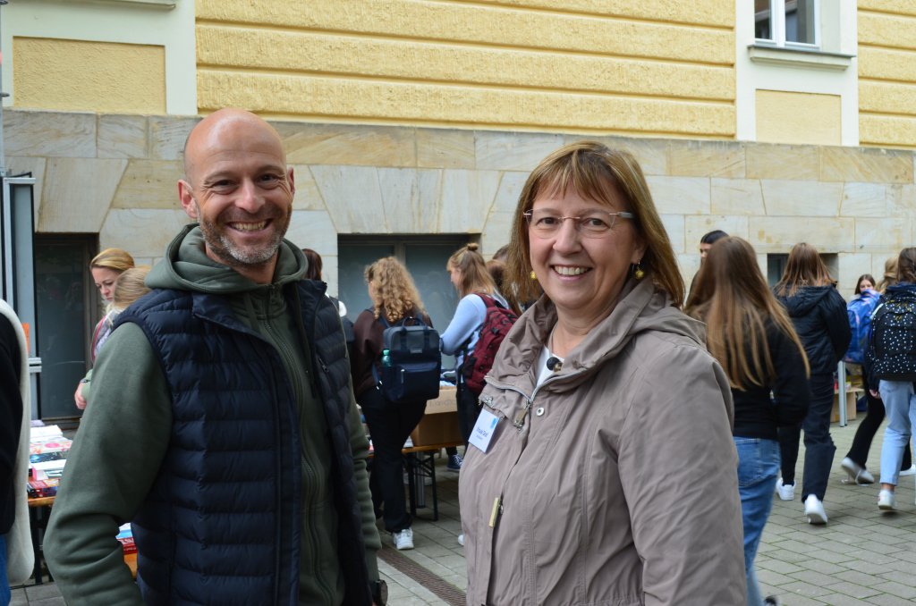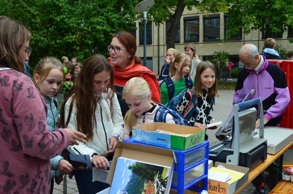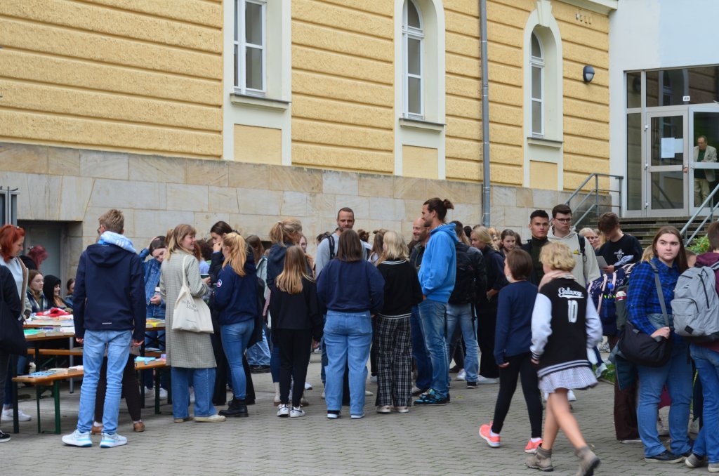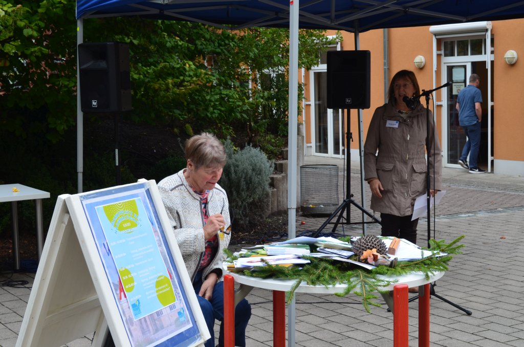 Doch der Marktplatz hatte noch mehr zu bieten. So konnten die Schülerinnen und Schüler und deren Eltern von der Expertin Frau Bock Wissenswertes zu naturnahen Gärten und heimischer Artenvielfalt von der Igelexpertin Frau Bock erfahren und sich über die besondere Bedeutung von Flora und Fauna informieren. Mitarbeiterinnen des foodsharing e.V. brachten gerettete Lebensmittel mit und berichteten über ihre Arbeit, die bei manchem Besucher für Erstaunen sorgte: „Lebensmittel ganz umsonst? Ich hätte nicht gedacht, dass die Läden das wegwerfen“, konnte man Besucher sagen hören. Auch die Hamsterbacke e.V. stellte ihren Unverpacktladen vor, in dem sich Kunden mit regionalen, unverpackten und ökologisch produzierten Lebensmitteln versorgen können. Bei der Mitmachstation des Papierpilzes wurden aus recyceltem, einseitig bedrucktem Papier individuelle Schreibblöcke gefertigt. Die Auswahl der unterschiedlichen Motive auf dem Papier sorgte für Begeisterung bei vielen Blockmacher*innen.