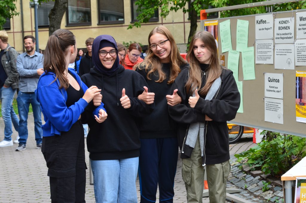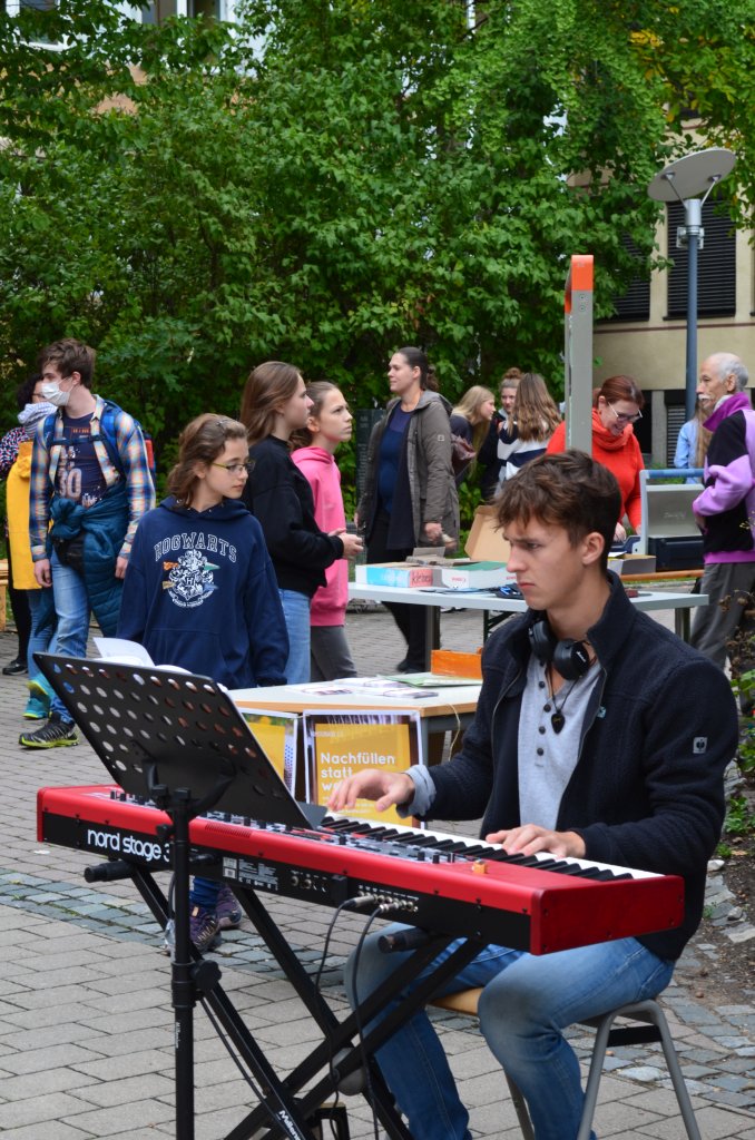 Einen Rahmen des Events bereitete das vegane Catering und die musikalische Untermalung seitens der Abschlussklasse Q12. Schülerin Selina Zimmermann blickt zufrieden über den Pausenhof ihrer Schule und stellt abschließend fest: „Ich bin einfach überwältigt, wie gut unsere Idee angenommen wird. Heute merken hoffentlich alle, dass nachhaltig leben gar nicht mal so schwierig sein muss.“
