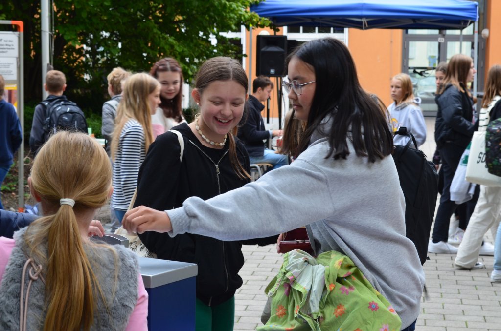 „Wow, ein Guns-N‘-Roses-Shirt und ein Rolling-Stones-Shirt für zusammen nur sieben Euro. Das war mein bester Deal des Tages“, schwärmt Tim nach dem ersten Marktplatz der Nachhaltigkeit des Richard-Wagner-Gymnasiums am vergangenen Freitag. Schnäppchen wie diese konnten auf dem Flohmarkt auf dem Pausenhof gemacht werden. Auf Initiative des Teams Umweltschule, bestehend aus Mitgliedern der SMV und einigen Lehrkräften, boten zum Auftakt des neuen Schuljahres Mitglieder der Schulfamilie Spielsachen, Bücher, Pflanzen und viele weitere Sachen zum Verkauf an. Wer die Gegenstände nicht selbst verkaufen wollte, konnte diese auf einen Spendentisch legen und dadurch Geld für nachhaltige Projekte an der Schule sammeln.