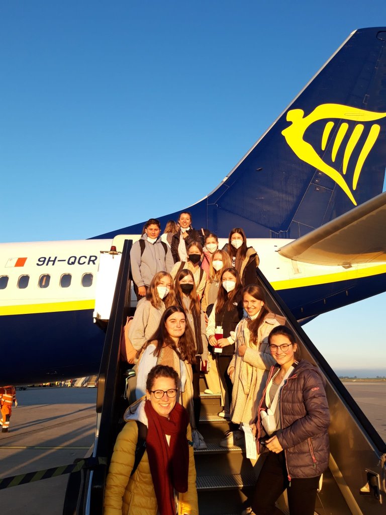 Für uns alle begann der Tag bereits mitten in der Nacht, da wir uns alle um 03.30Uhr am RWG trafen, um mit dem Bus zum Flughafen Nürnberg zu fahren. Am Flughafen angekommen, gaben wir unser Gepäck auf und knipsten die ersten Erinnerungsfotos. Nach einem ca. einstündigen Flug, der für viele von uns gleichzeitig der erste Flug war, kamen wir um 09.30Uhr in London Stansted an, von wo aus wir dann nach Market Harborough gebracht wurden. Während der Fahrt konnten wir uns noch ein bisschen ausruhen, so dass wir dann ausgeschlafen unsere AustauschpartnerInnen an der Welland Park Academy kennenlernen konnten. Obwohl wir im Vorfeld schon mit den englischen SchülerInnen in Kontakt standen, waren wir sehr aufgeregt, ihnen das erste Mal zu begegnen. Alle Sorgen und Aufregung waren aber schnell verflogen, da wir sehr nett und herzlich begrüßt wurden. Nach einer kleinen Stärkung in der Cafeteria wurden wir am Nachmittag von den Gasteltern abgeholt und zogen in unser neues Zuhause ein. Am Abend fielen wir todmüde ins Bett und freuten uns schon auf den nächsten Tag, an dem wir das echte Leben an einer englischen Schule erleben sollten.