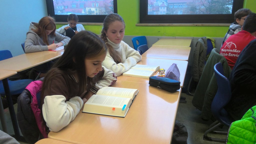Etwas weniger kuschelig – aber deshalb nicht weniger gemütlich – ging es am Freitag, den 18. November, im Richard-Wagner-Gymnasium zu. Unter dem Motto „gemeinsam einzigartig“ stand der diesjährige Bundesweite Vorlesetag, an dem sich die Unterstufenklassen eifrig beteiligten. In nahezu allen Klassen wurde diesem besonderen Tag mindestens eine Unterrichtsstunde gewidmet, in der vorgelesen, gebannt gelauscht, aber auch gelacht, diskutiert und gebastelt wurde. Besonders gut entspannen ließ es sich im Lesenden Klassenzimmer, dessen neue Ausstattung mit Wolkentischen, Kipphockern und Sitzsäcken von den Schülerinnen und Schülern gerne ausprobiert wurde.