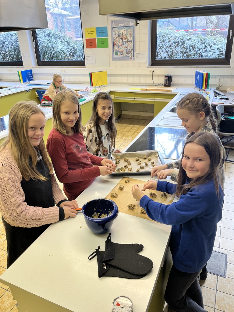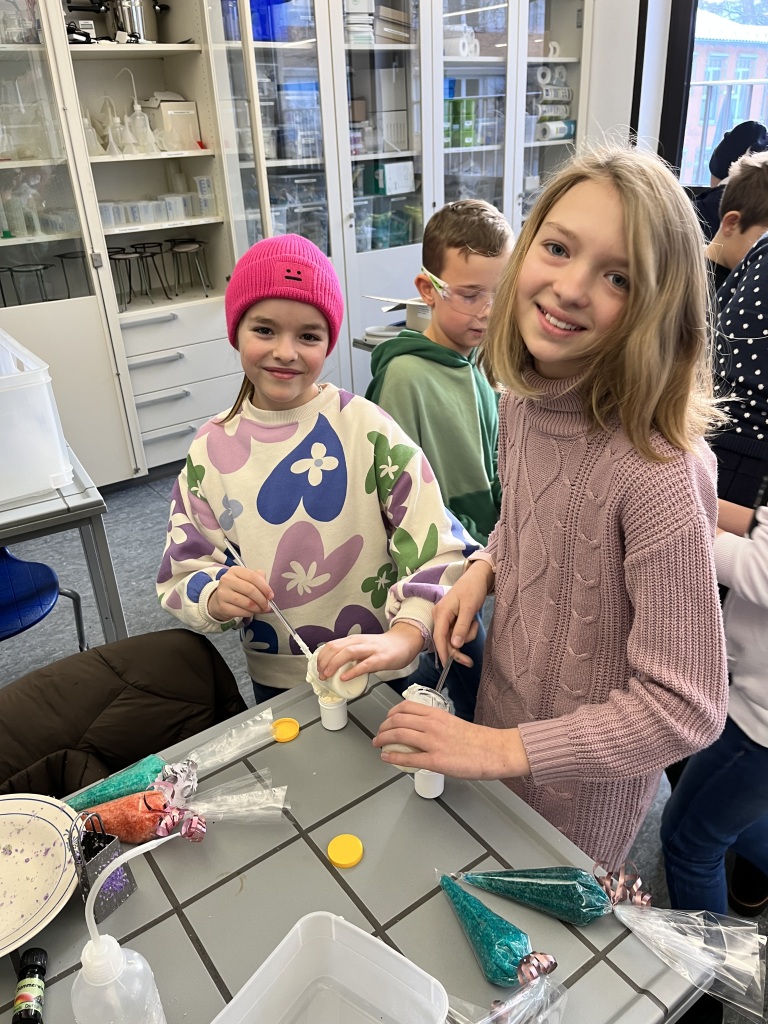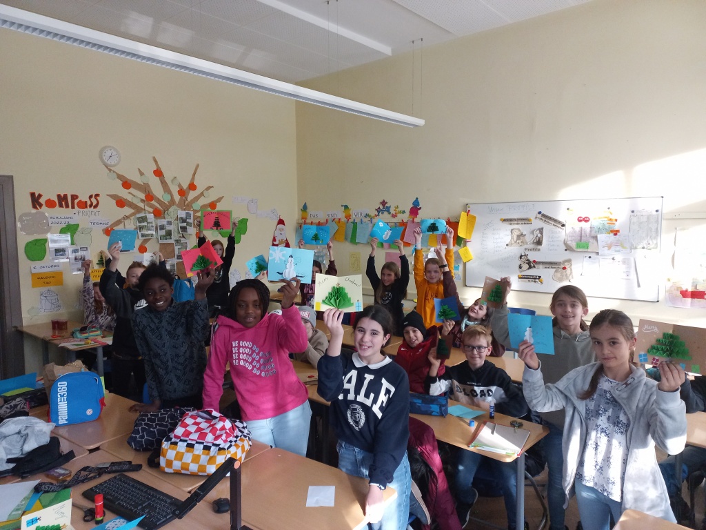Die Vorweihnachtszeit ist für alle von uns auch immer eine äußerst stressige Zeit: Schulaufgaben, Exen und Abfragen müssen gemeistert werden, Geschenke für die Liebsten müssen besorgt und eingepackt werden, eine Weihnachtsfeier jagt die andere und manche engagieren sich nebenbei auch noch für unser Weihnachtskonzert oder Spendenaktionen für Menschen, denen es schlechter geht als uns. Da kam der KOMPASS-Tag für unsere 5. Und 6. Klassen genau zur rechten Zeit. Einen ganzen Tag konnten die Schülerinnen und Schüler den Weihnachtsstress vergessen und gemeinsam mit ihren Mitschülern und Lehrern tolle Aktionen erleben. So wurden in unserer Schulküche Christmas-Cookies gebacken, Apfelgelee und Apfelpunsch zubereitet und nebenbei auch ein vernünftiger und nachhaltiger Umgang mit Lebensmitteln besprochen. Außerdem stellten einige Schüler selbstständig mit ihren Chemielehrern Cremes und duftende Badekugeln her. Diese wurden anschließend mit Upcycling-Geschenkpapier, welches liebevoll und ansprechend dekoriert und verschönert wurde, verpackt und mit eigens hergestellten Dekogegenständen verziert. Es wurden Weihnachtslieder gesungen und Weihnachtsbräuche unterschiedlicher Kulturen besprochen. Klassenzimmer wurden mit vorher gebastelten Weihnachtssternen und Teelichtern dekoriert und es sind individuelle Weihnachtsgrußkarten in unterschiedlichen Sprachen entstanden. Für genügend Bewegung wurde auch gesorgt und so haben manche Klassen den Christkindlmarkt besucht, Weihnachtsspaziergänge mit Fotochallenge durchgeführt oder Teambuilding beim Toben in der Turnhalle erlebt.