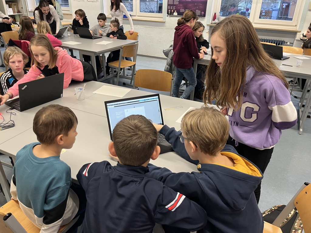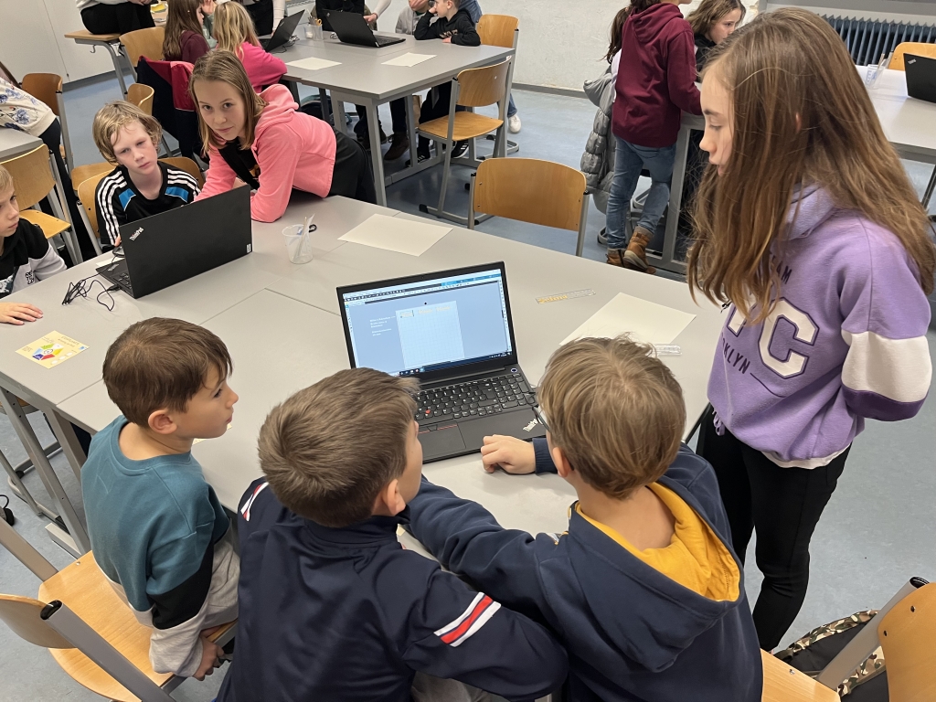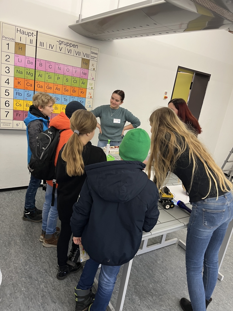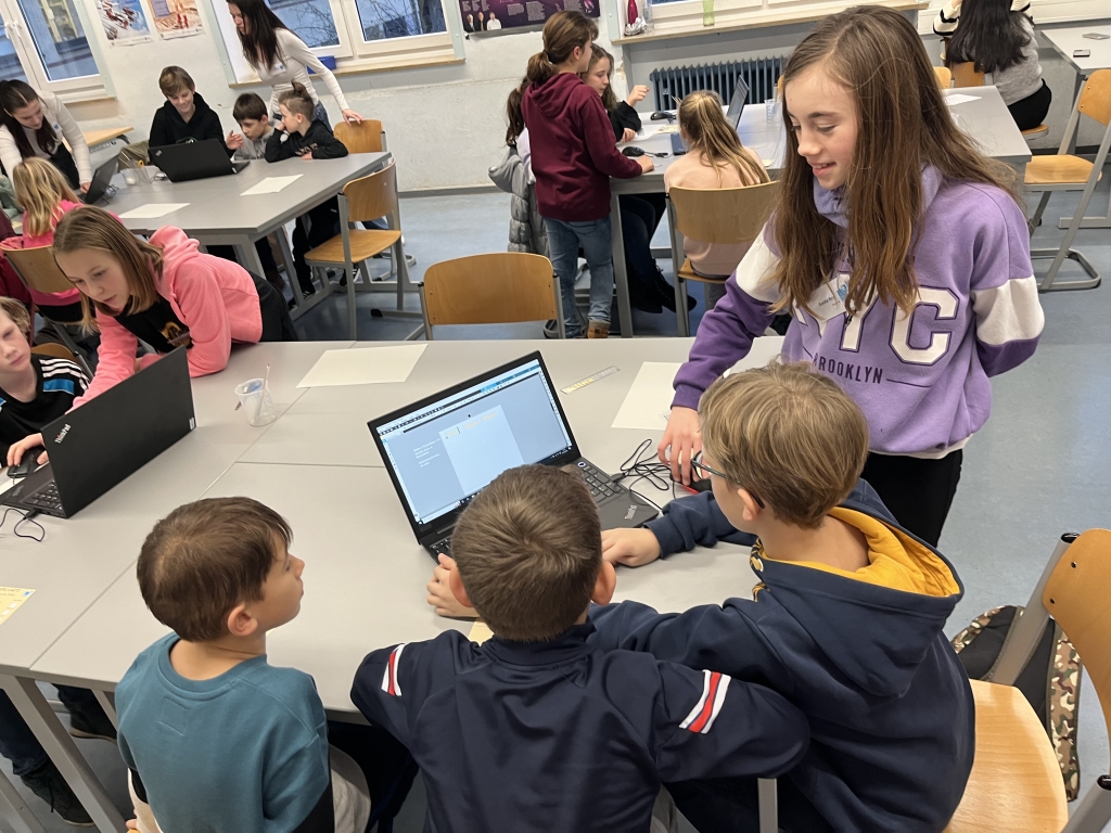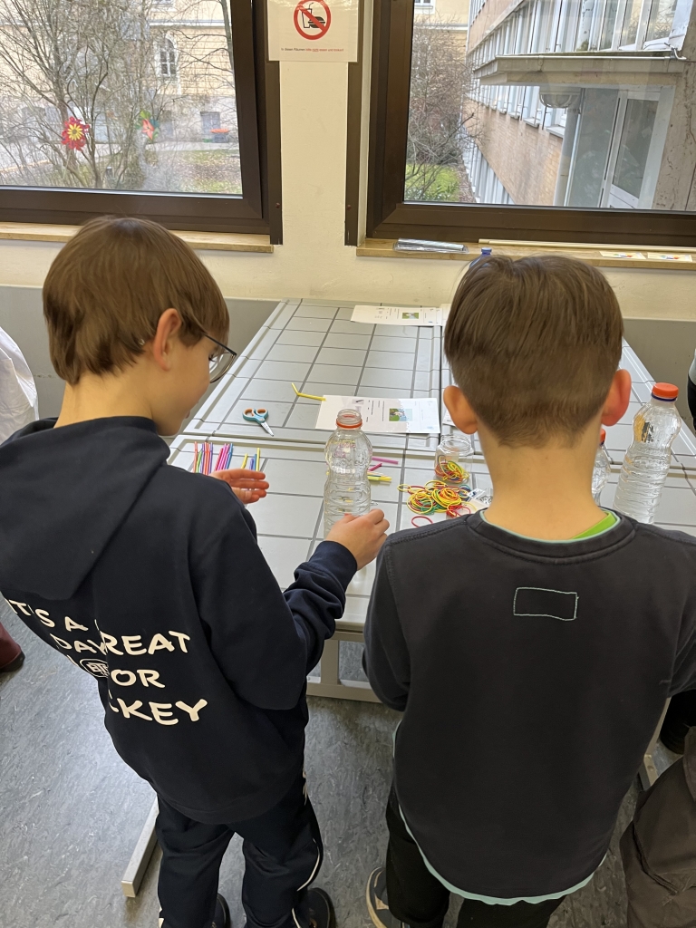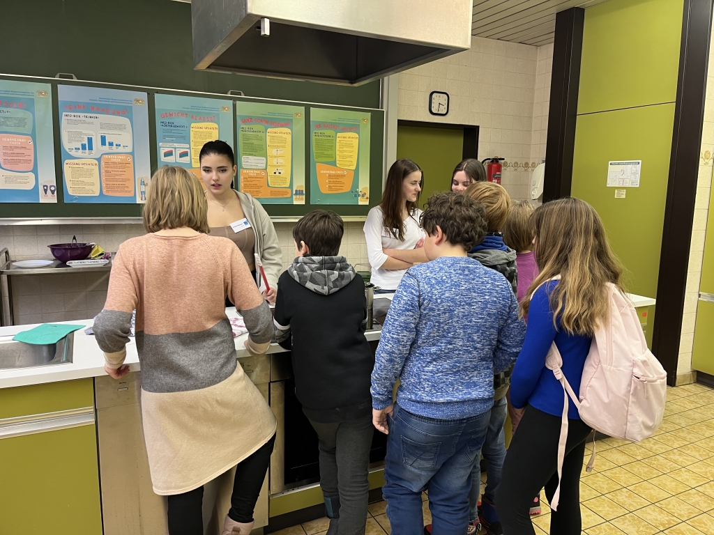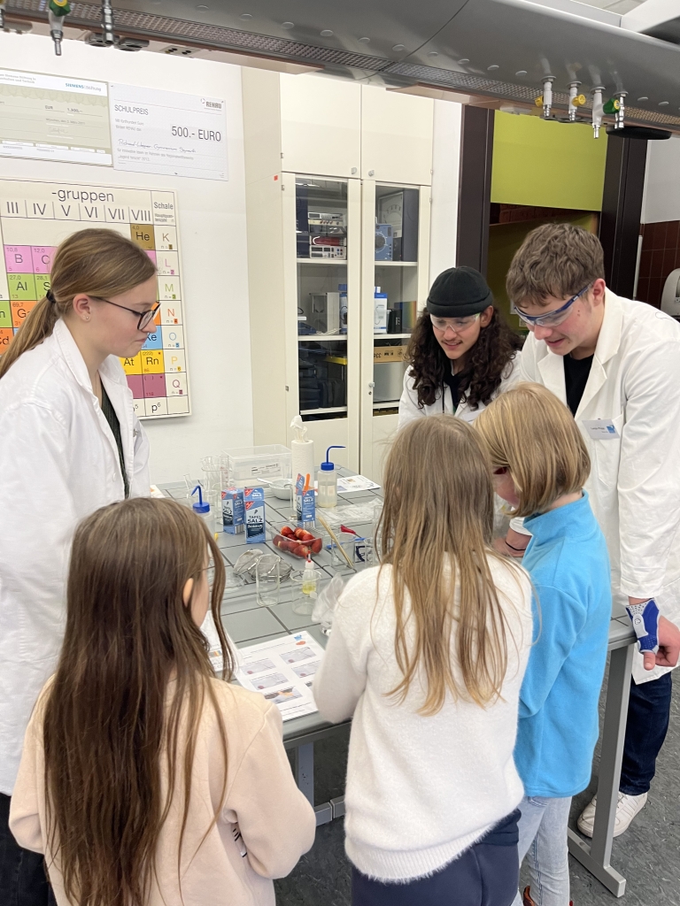 Damit dieser Tag so gut gelingen konnte, waren nicht nur viele Kolleginnen und Kollegen im Einsatz, die bei der Vorbereitung und Umsetzung der Workshops ihr bestes gaben, sondern auch unzählige Schülerinnen und Schüler aus den verschiedensten Jahrgangsstufen, die ganz unterschiedliche Aufgaben übernahmen. Die Kollegstufenschüler_innen kümmerten sich um das leibliche Wohl aller Beteiligten und boten eine riesige Auswahl an selbst gebackenen Kuchen und frisch gebrühten Kaffee an. Viele Mädels und Jungs aus den 9. und 10. Klassen betreuten die Kids bei ihren Workshops und führten sie durch unser Schulhaus. Außerdem waren auch viele unser Schülerinnen und Schüler als direkte Helfer bei den Workshops beteiligt und zeigten den Grundschülerinnen und Grundschüler stolz, was sie selbst am RWG in den Profilfächern erlernt haben.