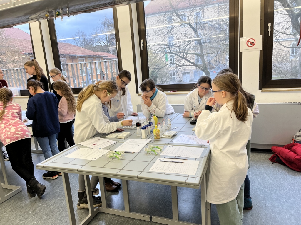 138 Schülerinnen und Schüler von 27 verschiedenen Grundschulen aus dem Raum Bayreuth schnupperten am großen Aktionstag in das Schulleben am RWG. Bereits im Vorfeld entschieden sich die Kids für zwei unserer Profilfächer, welche sie dann am Aktionstag in verschiedenen Workshops ausprobieren konnten. Mit funkelnden Augen wurde experimentiert und geforscht. Einige Kinder schlüpften begeistert in fremde Rollen im Theater, andere machten aus den übrig gebliebenen Schokonikoläusen von Weihnachten leckere Sticks für Trinkschokolade und erlebten so, wie durch das Profilfach Future WE Nachhaltigkeit in den Alltag integriert werden kann. Beim Digital-kreativen Arbeiten wurden Lineale mit den Namen der Kids produziert und 3D-Drucke angelegt und im Sport wurde die Kletterwand unsicher gemacht und ein riesiger Erlebnisparcours lud die Kids zum Toben und Turnen ein. Die Eltern erkundeten währenddessen das Schulhaus oder führten bei Kaffee und Kuchen nette Gespräche mit einigen Lehrkräften und Vertretern des Elternbeirats in der Mensa.