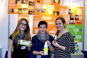 Unsere Schule hatte drei Wettbewerbsarbeiten ins Rennen geschickt: Marco und Tabea Horstmann (7b) untersuchten gemeinsam mit Lena Neuner (7b) die Wirksamkeit diverser Mundwasser. Emily Greiner (7c) wies die antibakterielle Wirkung traditioneller Halsschmerzmittel nach und verglich sie mit Produkten aus der Apotheke. „Lebt mein Joghurt noch?“ fragten sich Hannah Stadter (7b) und Lena Bitterwolf (8d), nachdem sie feststellten, dass auf vielen Joghurtsorten unterschiedliche bzw. keinerlei Angaben zu den Bakterienstämmen zu finden sind.