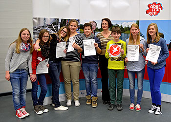 Das RWG-Team, betreut von Sabine Fröber (4. von rechts), zeigte nach der Präsentation seiner Forschungsergebnisse stolz die Teilnahmeurkunden.