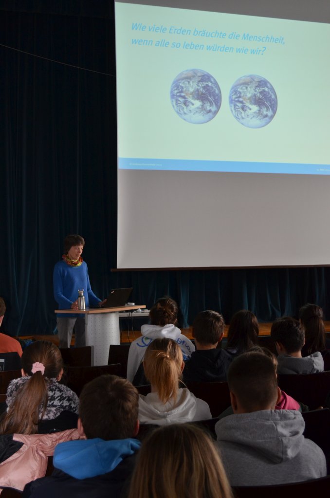 Am 15.3.23 fand zum ersten Mal eine Fortbildung für die Ökoscouts der Klassen 5 bis 10 statt. Für diese Fortbildung hatte das Team der Umweltschule zwei Referenten an das Richard-Wagner-Gymnasium eingeladen. Zum einen Herrn Gras vom Stadtbauhof Bayreuth, zum anderen Frau Dr. Maiken Winter von der Verbraucherzentrale Bayern. Herr Gras berichtete zum Thema nachhaltiges Leben und den Möglichkeiten, Ressourcen im Alltag zu schonen. Gemeinsam wurde besprochen, dass dazu vor allem gehöre, Energie und Wasser zu sparen und auch den eigenen Konsum (bezüglich Kleidung und technischer Geräte) zu überdenken. So wurden diverse Energiesparmaßnahmen für das Schulgebäude vorgestellt und es wurde klar, wie man schon mit kleinen Handlungen enormes Einsparpotential erreicht. Der Mitarbeiter der Stadt erklärte den interessierten Schülern ferner das Prinzip der Abfallhierarchie, das die Unterpunkte Abfallvermeidung, Wiederverwendung, Recycling, Energieerzeugung und Abfallbeseitigung umfasst. Schließlich wurden die Ökoscouts hinsichtlich der verschiedenen Arten der Abfall- und Mülltrennung informiert und konnten in einem praktischen Workshop selbst ihr Wissen diesbezüglich testen und anwenden. Im Vortrag von Frau Dr. Winter wurde klar, dass, wenn wir alle so weiterleben wie bisher, drei Welten nötig wären. Umweltschutz und nachhaltiges Leben muss also bei jedem Einzelnen beginnen und bereits kleine Schritte hin zu einem nachhaltigeren Lebensstil machen den Unterschied. Oft wären die eigenen Erwartungen aber zu hoch. So empfahl die Expertin den Schülern zum Beispiel erst einmal ein plastikreduziertes Leben, statt ein komplett plastikfreies anzustreben. Interessant waren auch die Ausführungen von Frau Dr. Winter zum Thema Mikroplastik in unseren Meeren und Gewässern und die Auswirkungen auf unsere Nahrung: so würde ein Mensch, der wöchentlich Fisch verzehre mittlerweile eine Checkkarte Plastik pro Woche zu sich nehmen. Ebenso käme es darauf an die richtigen Verpackungen im Bereich der Lebensmittel (Getränke/Joghurt) zu wählen. Mehrwegflaschen seien eben nicht gleich Flaschen mit Pfandrückgabe. In jedem Falle sind Glasflaschen den Plastikbehältern vorzuziehen. Voller neuer Impulse und Ideen machen sich nun unsere kleinen und großen Umweltschützer auf in Sachen umweltfreundlicherer (Schul-) Alltagsgestaltung.