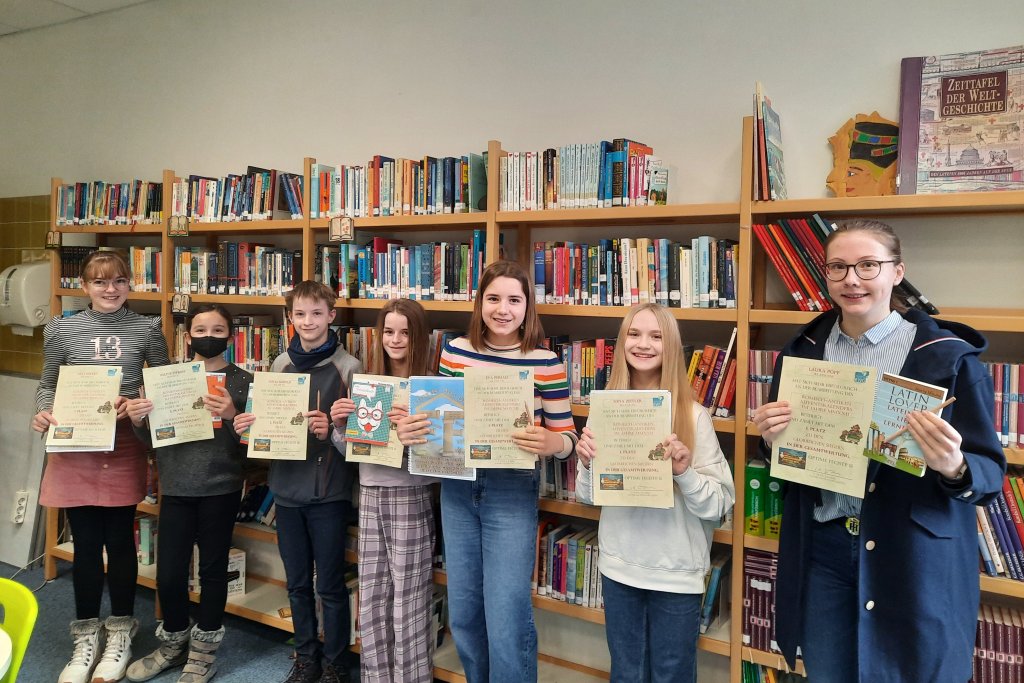 Aber auch die weiteren Preisträger/innen wussten durch tolle, nahezu fehlerfreie Leistungen zu überzeugen; auf den weiteren Plätzen folgten: Sarah Liebold (5c), Joline Pitroff (6f), Jonas Liebold (7e), Josefa Bayer (10c) – jeweils Platz 2 – sowie Helen Hahn (7c) und Daniel Zacharias (6c), beide auf dem 3. Platz.