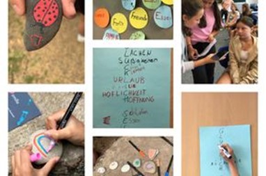 Während der Corona – Pandemie mussten die meisten Jugendlichen vollständig auf soziale Kontakte verzichten, die Folge davon waren unglückliche Schüler. Das merkten auch die Lehrer in der Schule, deswegen organisierten Frau Schmidt und Frau Keyser das Projekt „Glück erleben und ein eigenes Glücksrezept entwickeln“. Die Schülerinnen und Schüler lernten alles Rund ums Glück. Sie durften ihre eigenen Glückssteine entwerfen und diese dann auch mit nach Hause nehmen. Dafür haben sie individuelle Muster und einzigartige Schriftarten mit bunten Acrylstiften auf kleine Steine gemalt. Danach durften sie sich in der Turnhalle auspowern, zuerst haben sie in Zweierteams einen Memorylauf absolvieren, dabei mussten sie verschiedene Motive erkenne, sich merken, zur anderen Seite der Turnhalle laufen und aufschreiben. Danach standen weitere Spiele in der Gruppe auf dem Programm, so durften die Schülerinnen und Schülern viel Zeit mit ihren Freunden verbringen. Die meisten Schülerinnen und Schüler begeisterten sich für das Projekt, weil sie viel über die verschiedenen Facetten des Glücks gelernt haben. Es muss nicht zwingend ein materielles Geschenk sein, das man bekommt, es kann auch ein wenig Zeit mit der Familie oder mit Freunden sein, damit man Glück erleben kann. Und schließlich macht es einem selbst Freude, wenn man einem anderen Freude bereiten kann!