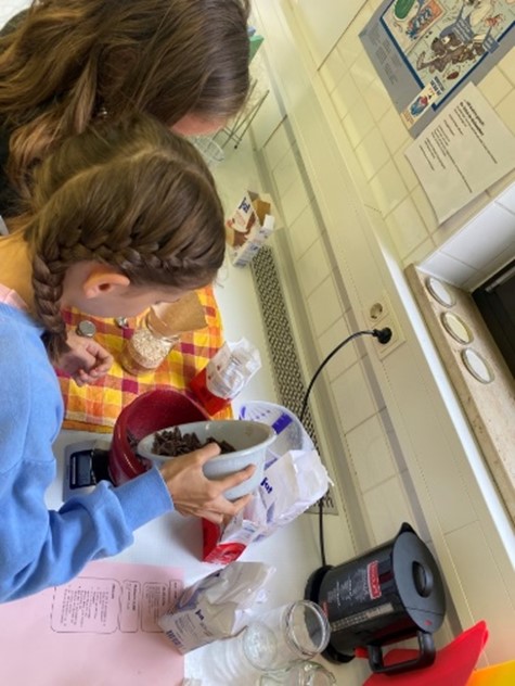 Der nächste und gleichzeitig letzte Gang brachte uns zu dem Projekt Backmischungen, wobei Teamwork das A und O war. Nachhaltigkeit stand ebenfalls im Mittelpunkt. Die Schüler*innen der 5. bis 7. Klassen nutzten diesen Workshop als Motivation, um ihren Alltag noch nachhaltiger zu gestalten. Sie arbeiteten in Teams, nach einer Weile wurde gewechselt. Ein Großteil der Zutaten der Backmischungen und auch die Verzierungen wurden hauptsächlich aus nachhaltigen Produkten hergestellt. Die zuständige Lehrkraft war mehr als begeistert über die Endresultate.