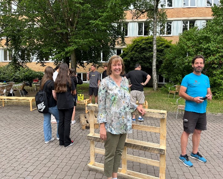 Unser nächster Stopp war bei dem Projekt „Palettenbau“. Wir interviewten drei Schüler, die uns mitteilten, dass diese Aktion bei den Schülern anfangs kein allzu großes Interesse geweckt hat, doch dann wurde es ziemlich interessant, berichteten die Jungs. Leider zeigten sich die Teilnehmer darüber hinaus uns gegenüber, den Reportern, wenig kooperativ, weswegen wir bedauernswerterweise nicht so viele Informationen bekommen haben, aber selbstverständlich haben wir Verständnis für Schüler in der Pubertät, die noch mit ihren Entwicklungsaufgaben beschäftigt sind 😉. Des Weiteren konnten wir noch in Erfahrung bringen, dass die Lehrer des Workshops sehr aufmerksam und freundlich waren. Im Großen und Ganzen fanden die Schüler das Angebot auch hier im Laufe der Aktion sehr gewinnbringend.