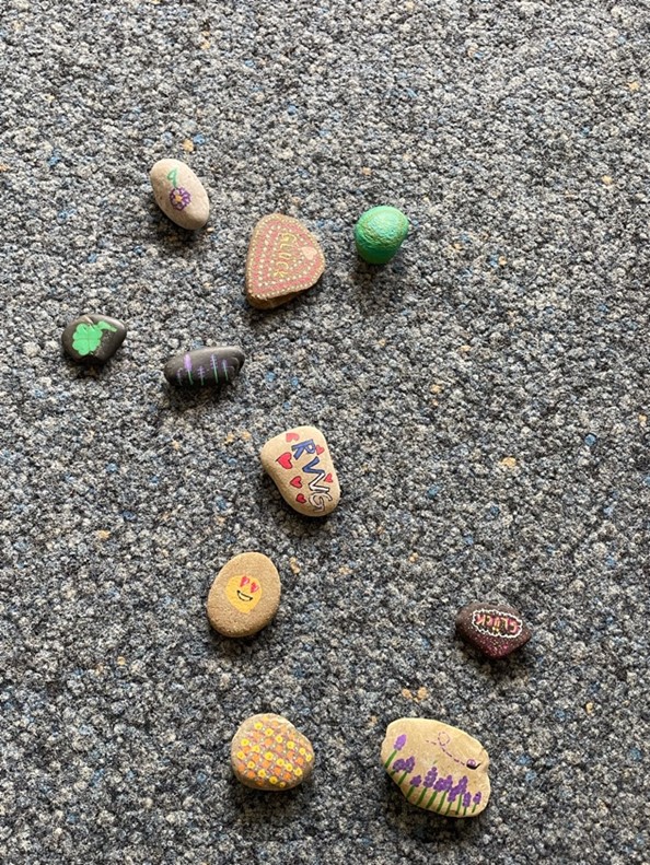 Was Glück bedeutet, wurden auch die 5. bis 7.-Klässler, die das Projekt gewählt haben, gefragt. Sie haben ihre Ideen und Gefühle an einer Pinnwand gesammelt und sind zu dem Ergebnis gekommen, dass es viele große und auch kleine Dinge gibt, welche uns glücklich machen. Die meisten nannten Familie, Essen, (Haus-)Tiere und Urlaub, aber auch das Teilen von Glück mit Freunden wurde angesprochen. Daraufhin wurde anhand eines Filmes erklärt, was geteiltes Glück bedeutet. Die Schüler durften dann Glückssteine für sich oder für Freunde und Familie bemalen, um genau dieses mit ihnen zu teilen. In einem Interview mit Frau Keyser und Frau Schmidt erfuhren wir, dass den Lehrern häufig auffällt, dass viele Schüler nach dem Corona-Lockdown verschlossener und trauriger wirken. Deshalb haben sie auch das Projekt „Glück erleben und eigenes Glücksrezept entwickeln“ auf die Beine gestellt. Tipps, um glücklicher zu sein, sind zum Beispiel, sich immer wieder vergangene Glücksmomente bewusst zu machen und die Gedanken auf Positives zu lenken. Allerdings macht jeden etwas anderes glücklich, beispielsweise gutes Essen, sportliche Aktivität usw. Auch das Glück zu teilen kann glücklich machen, das bedeutet letztendlich, anderen eine Freude zu machen.