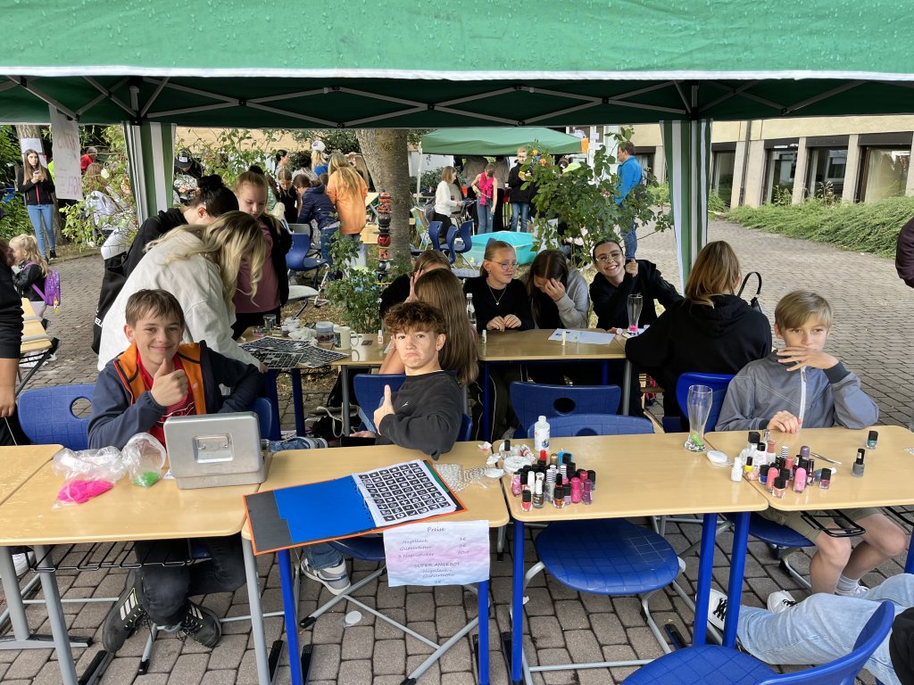 Ganz herzlichen und großen Dank an alle SchülerInnen und die betreuenden Lehrkräfte, die mit ihren tollen Ständen und Aktionen das Fest bereichert haben. Ein großes Lob geht an die 10. KlässerInnen, die das Fest auf- und abgebaut haben sowie das Spülmobil betreuten. Und natürlich auch an die Q11, die uns so großartig versorgt hat. Zuguterletzt bedanke ich mich beim Elternbeirat, dem Verein der Freunde und der SMV für deren Unterstützung und den zahlreichen Besuchern, die wussten wie man feiert! Schöne Ferien.