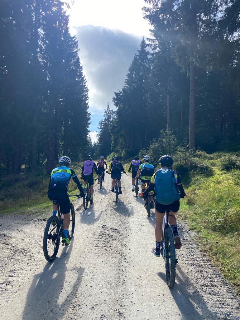 Am Freitagmorgen machten wir uns – müde vom langen Abend mit hitzigen politischen Diskussionen – bei stolzen 9 Grad auf in den Bikepark, um an unserer Fahrtechnik zu feilen. Danach führte uns Jakob auf einer abwechslungsreichen und ansprechenden Route über die Trails des Fichtelgebirges. Zunächst ging es hoch auf den Ochsenkopf, dann zu Weißmainfelsen & -quelle und nach ausgiebiger Pause am Seehaus über den Fichtelsee zurück zur Unterkunft. Dort stießen die restlichen Schüler*innen des Seminars, die leider nicht mitfahren konnten, zu uns, um einen gemütlichen letzten Abend mit uns zu verbringen.