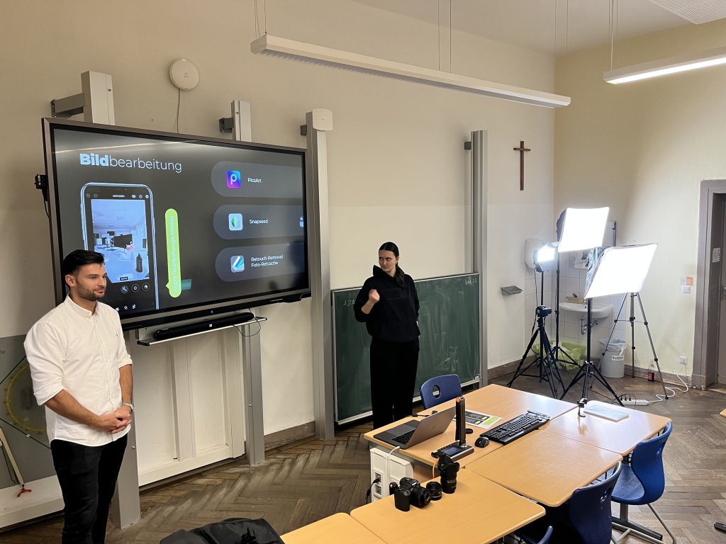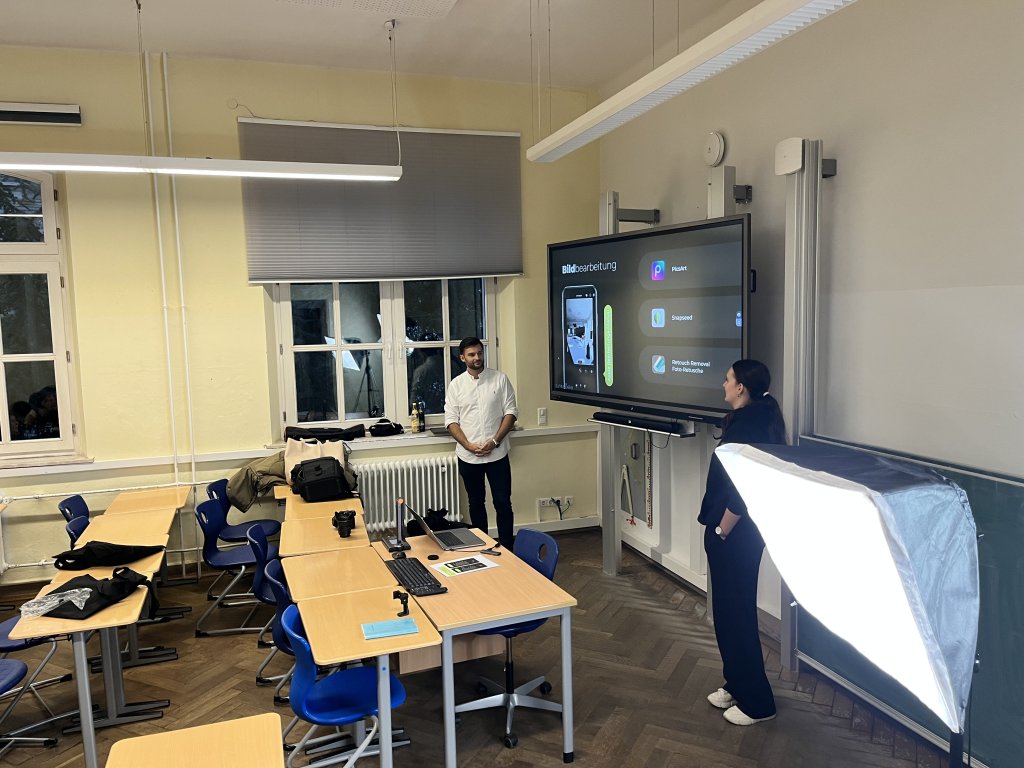 In zwei äußerst gewinnbringenden Workshops gaben die Medienprofis von Viewento ihr Knowhow in den Bereichen „Bildbearbeitung und Kurzfilme“ weiter. Der erste Workshop fand bei uns am RWG statt. Max, Head of Marketing bei Viewento, und Anna Lea, Expertin für Marketingkommunikation, brachten eine große Auswahl an Profiequipment mit und zeigten den SchülerInnen aus dem P-Seminar Medien von Herrn Bauer den korrekten Umgang mit Licht, Blende und ISO. Direkt darauf konnten die SchülerInnen die hochwertigen Kameras selbst ausprobieren und das zuvor gelernte in die Praxis umsetzen. Die Experten von Viewento machten anschließend deutlich, dass auch Profifotografen die Bilder nachbearbeiten müssen. Den SchülerInnen wurden kostenfreie Programme vorgestellt, mit denen man sogar Handybilder zu echten Kunstwerken umwandeln kann.
